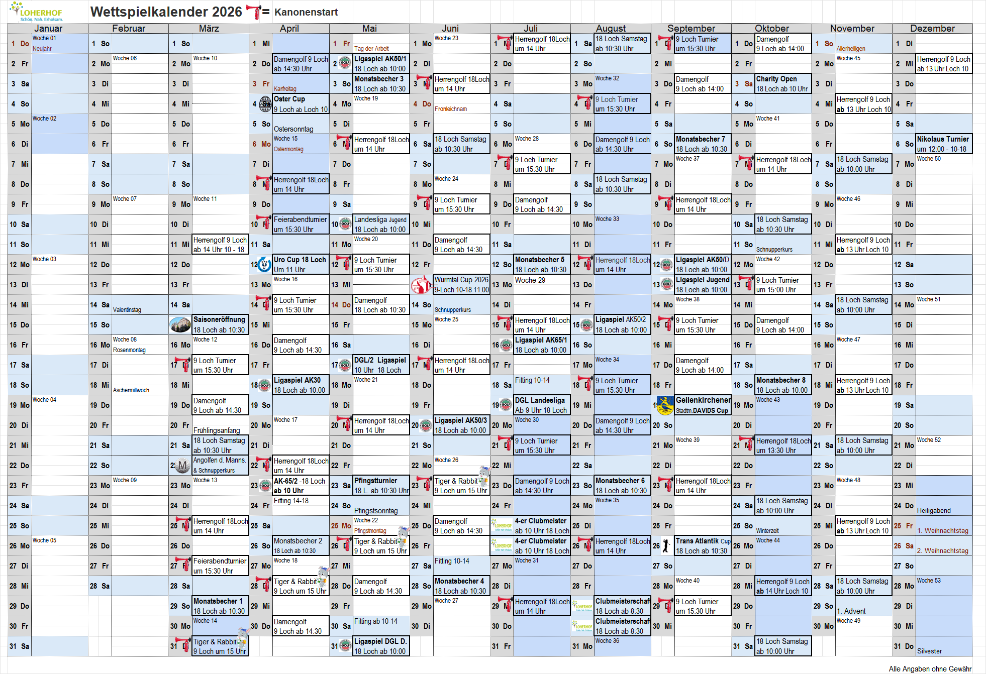 Hier haben Sie die Möglichkeit, den Turnierplan für das Jahr 2026 herunterzuladen. Entdecken Sie die geplanten Veranstaltungen, Teilnehmer und alle wichtigen Details zu den kommenden Turnieren. Klicken Sie einfach auf den entsprechenden Link, um Zugriff auf den aktuellen Turnierplan zu erhalten und seien Sie bestens informiert über die spannenden sportlichen Ereignisse, die uns im Jahr 2026 erwarten!